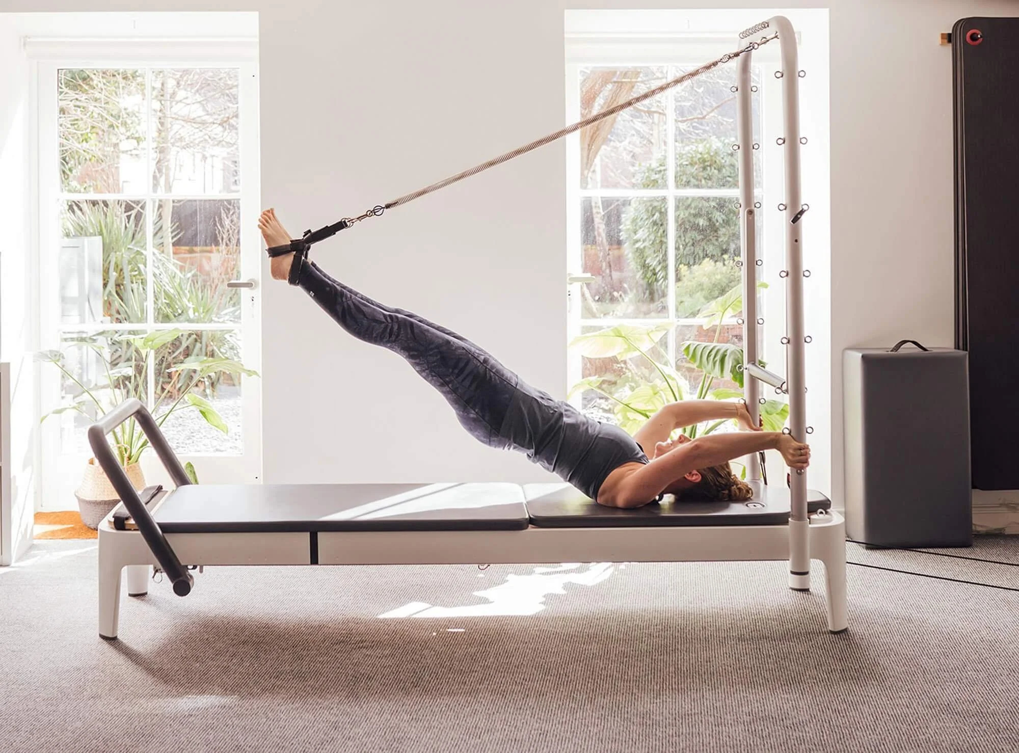 Mat Pilates uses your body weight and simple small props to develop strength and stability, while Reformer Pilates uses a specialist machine with springs to provide both support and resistance. This can make movements feel more guided and supported, or more challenging, depending on what your body needs.